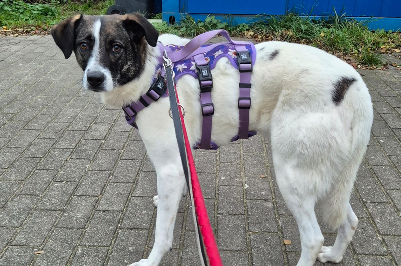 Mit ganz viel Geduld, Ruhe und Herz haben unsere ehrenamtlichen Helfer*in begonnen, Emma, im wahrsten Sinne des Wortes, behutsam an die Pfote zu nehmen, stets in ihrem Tempo.Schritt für Schhritt durfte sie erfahren, dass Hände freundlich sind, Stimmen beruhigen und Nähe keinesfalls gefährlich ist. Mittlerweile trägt die Hübsche ein Geschirr, was für ein riesiger Fortschritt und geht regelmäßig spazieren. Zu beobachten ist, wie aufmerksam sie folgt, Sicherheit sucht und sich gleichzeitig mutig ihrer Umgebung öffnet. Es steckt so viel Potential in ihr, wenn man sie sieht, versteht und ihr Zeit gibt.