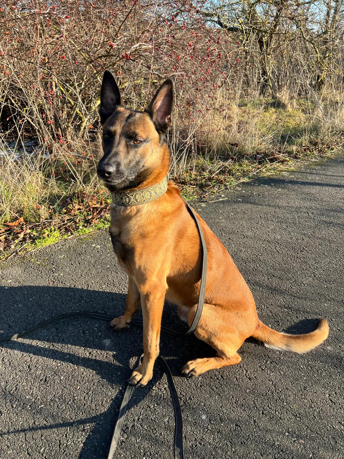 Hündinnen findet er sehr interessant, ist allerdings sehr aufgeregt und hormonell gesteuert. An der Leine hat er ordentlich Kraft, gerade, wenn ihm interessante Gerüche in der Nase hängen. Daran muss gearbeitet werden. Fremde Hunde triggern ihn .
