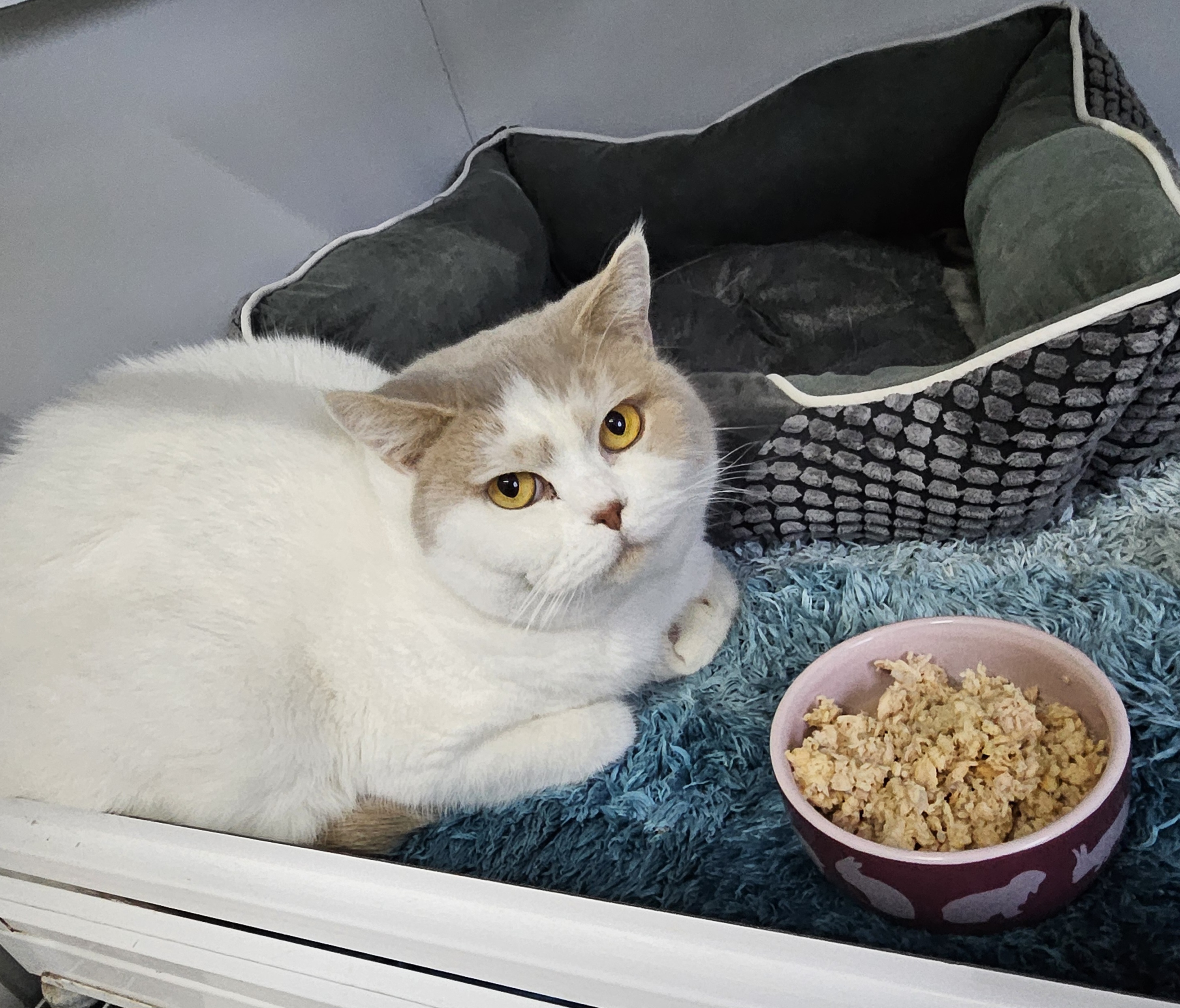 Quinn ist kein „Bonus“, kein Prestigeobjekt, kein hübsches Accessoire wegen seiner Rasse. Er ist ein fühlendes Wesen, das Nähe braucht, Beständigkeit und vor allem wieder eine Partnerkatze an seiner Seite. Er kennt das Leben nicht allein, er möchte es auch nicht lernen müssen. Einsamkeit steht ihm nicht gut, sie macht ihn still.