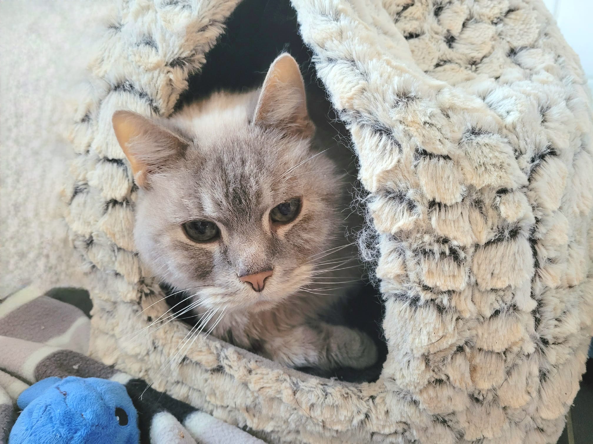 Er verlor, wie leider viele ältere Tiere, sein Zuhause und seinen Halt. Zudem stellte sich eine Niereninsuffiziens heraus, was seinem Allgemeinzustand noch einen Extrahieb verpasste. Er verlor die Lebenslust, was seiner Gesundheit deutlich schadete, also entschloss sich eine Mitarbeiterin, den 2014 Geborenen in private Pflege zu nehmen. Zudem sorgen Artgenossen bei ihm für Stress, weshalb er nur als Einzelprinz das neue Zuhause erobern soll.